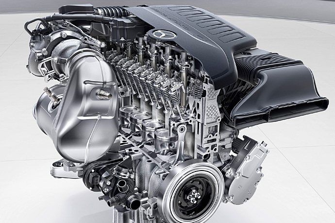 좌 ( BMW의 6기통 직렬엔진 ) 우 ( 벤츠의 8기통 V형 엔진 )